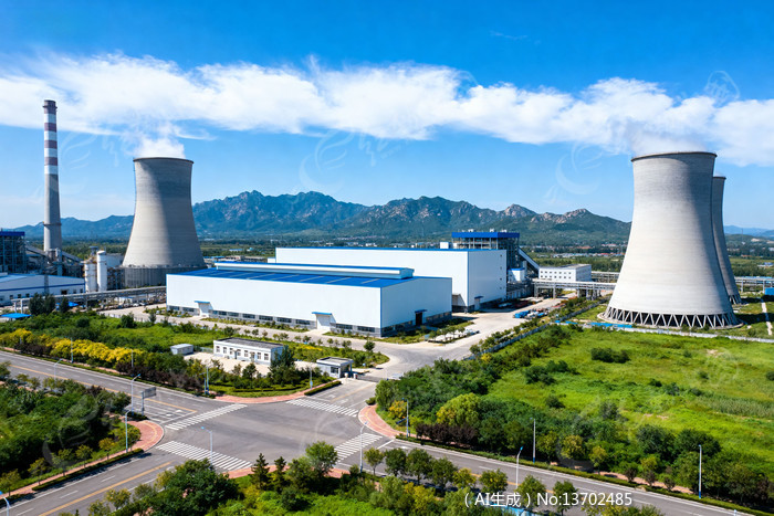 蓝天白云下的现代化电厂