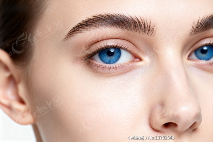 蓝色眼睛特写清晰可见眉毛与睫毛