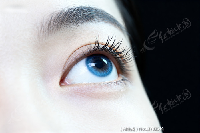 蓝色眼睛特写浓密睫毛与清晰纹理
