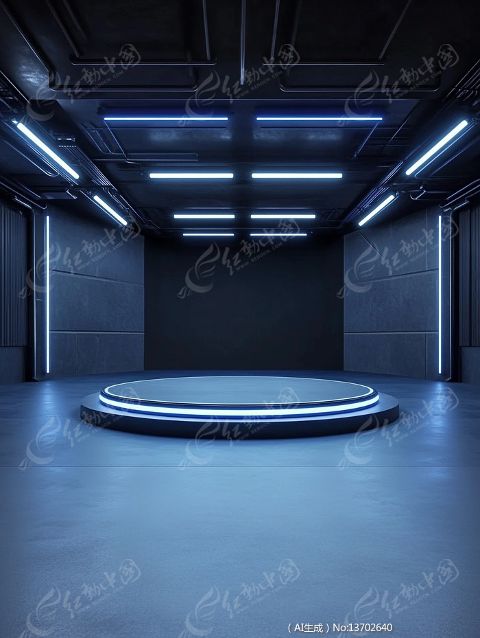 蓝色灯光装饰的圆形舞台