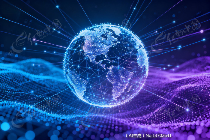 蓝色地球与紫色线条构成的科技网络图