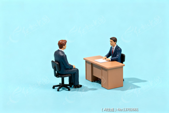 蓝色背景下两人进行商务会谈