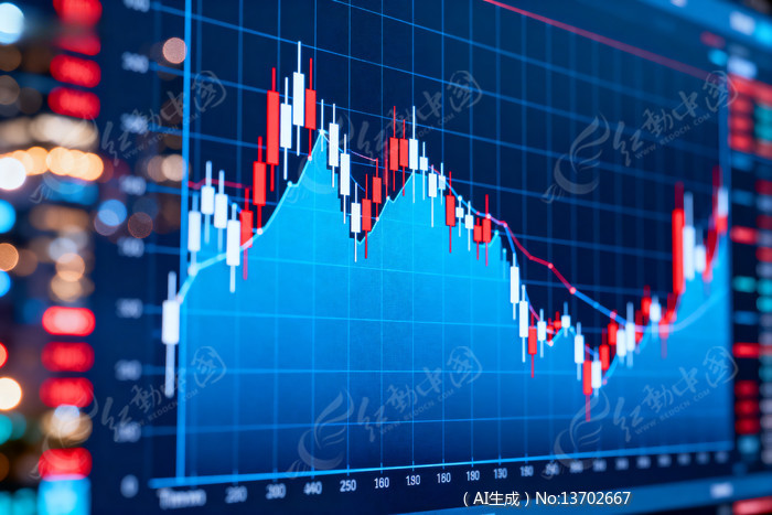 蓝色背景上的红白蜡烛图股票走势