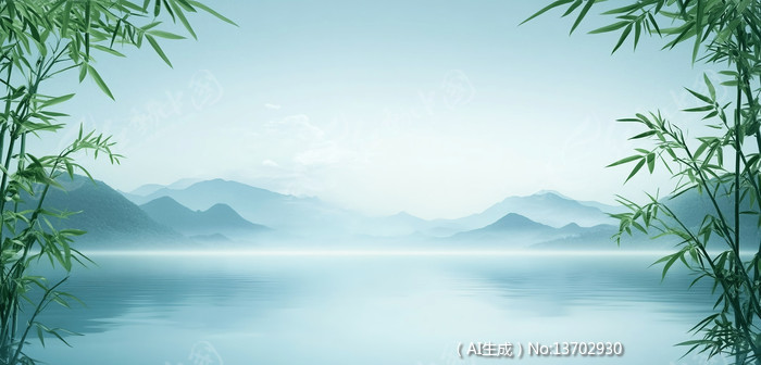 蓝调山水竹影湖光