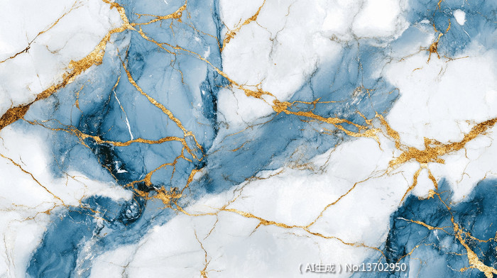 蓝白大理石纹理金色裂纹装饰