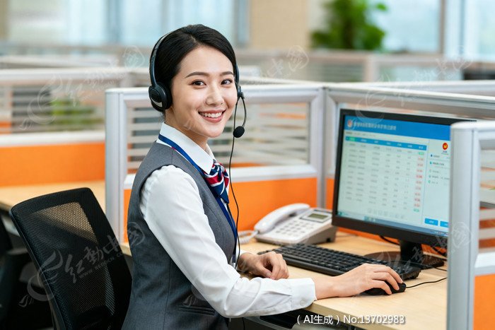 客服人员在办公环境中使用电脑工作
