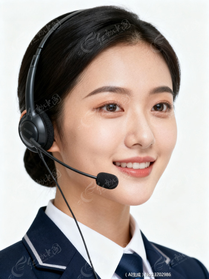 客服人员戴耳机微笑工作照