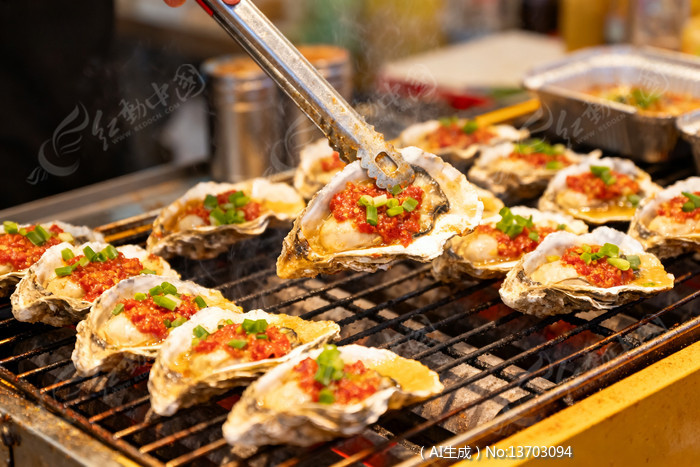 烤架上蒜蓉生蚝