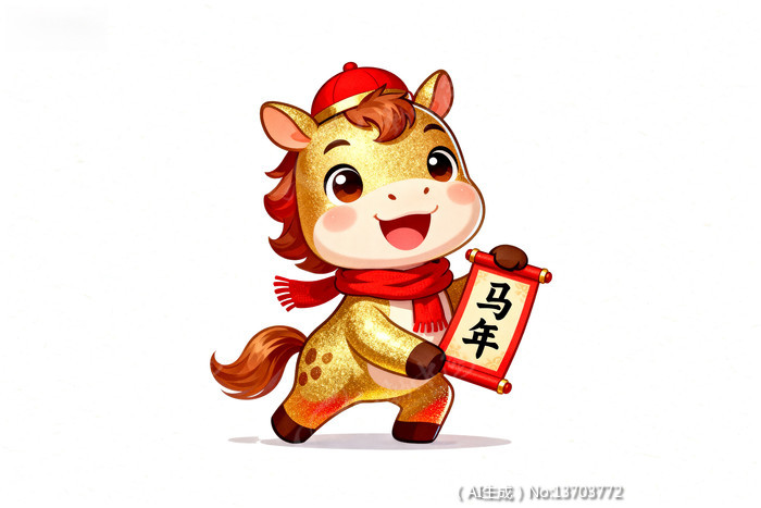 金色卡通马持卷轴喜庆贺新年