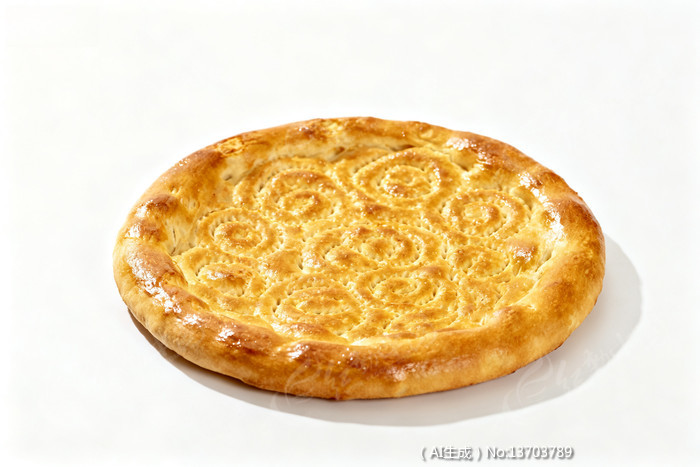金黄色圆形烤饼表面有螺旋状花纹