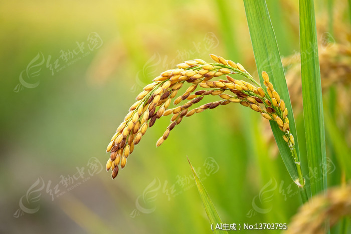 金黄稻穗垂于绿叶间尽显丰收之美