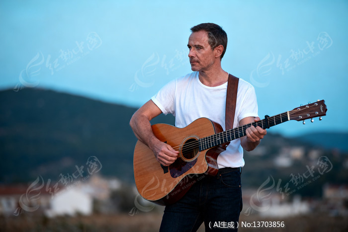 吉他手在户外弹奏木吉他