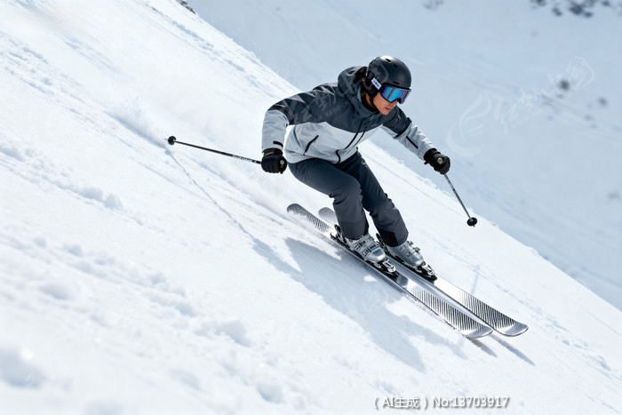 滑雪者在雪坡上快速滑行