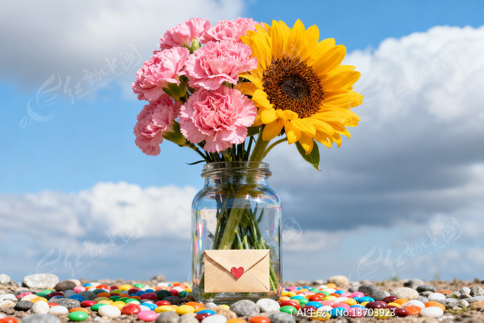 花瓶中向日葵与粉色康乃馨的浪漫组合