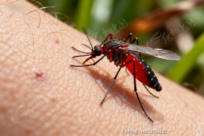 红色蚊子吸血特写