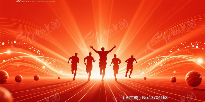 红色奔跑的人剪影年会背景