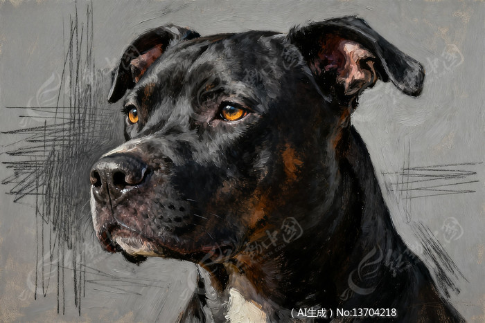 黑棕相间狗侧脸油画