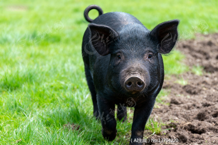 黑猪在草地上行走