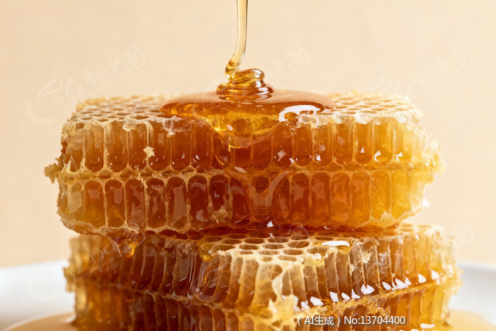 蜂蜜滴落蜂巢特写镜头