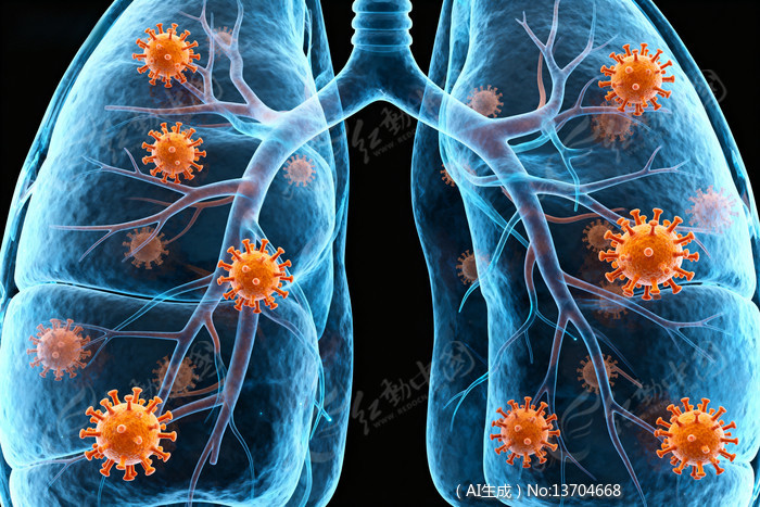 肺部结构与病毒附着的医学插图