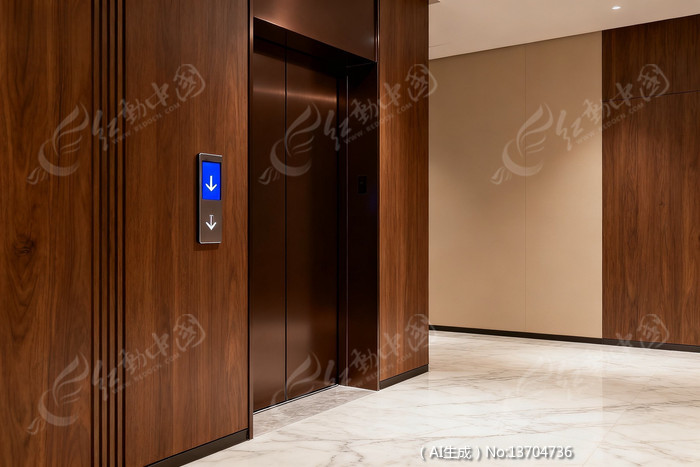 电梯厅木质墙面与大理石地面