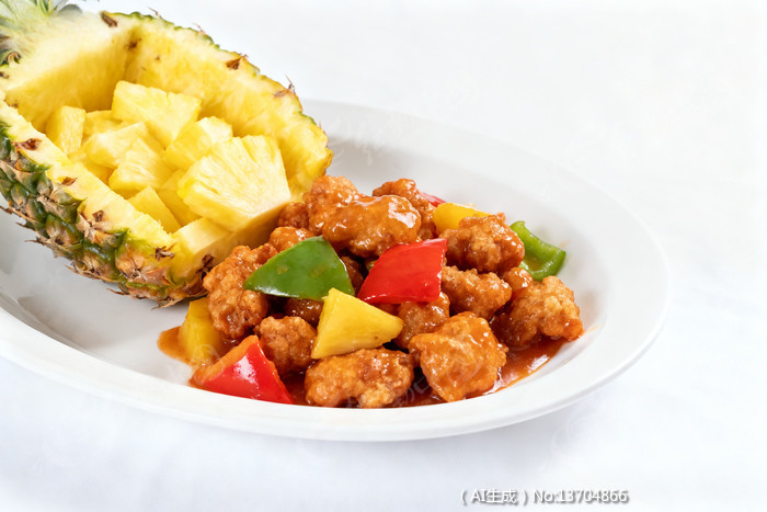菠萝咕咾肉配新鲜菠萝块