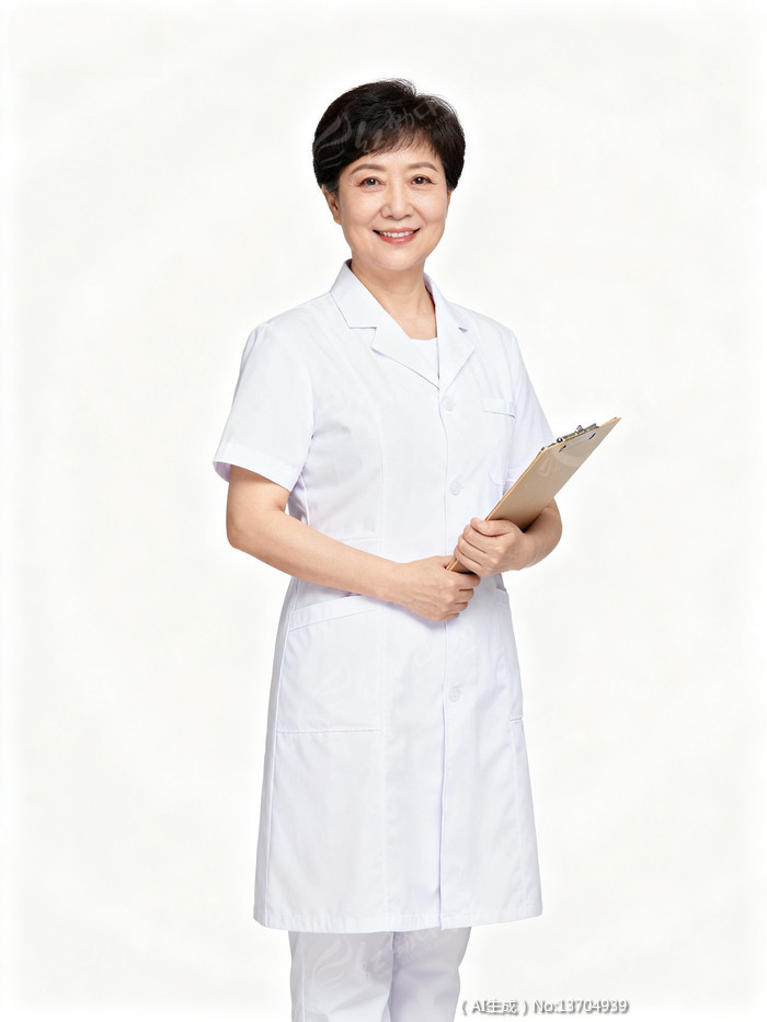 白衣医生手持文件夹微笑站立