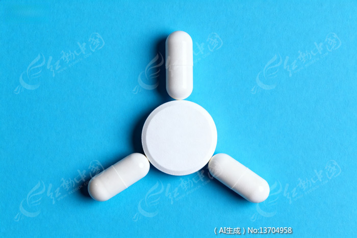 白色药片和胶囊在蓝色背景下的排列