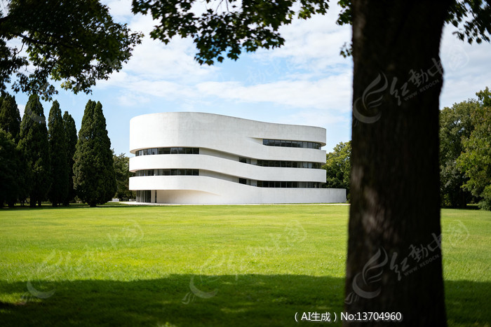 白色现代建筑绿地环绕曲线造型