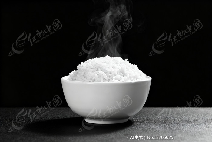 白米饭盛于白碗升腾热气