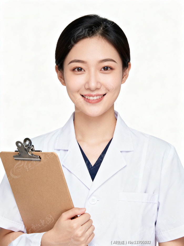 白大褂女性手持文件夹微笑形象照