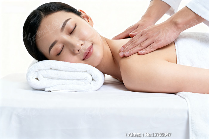 按摩师为顾客进行肩部按摩放松
