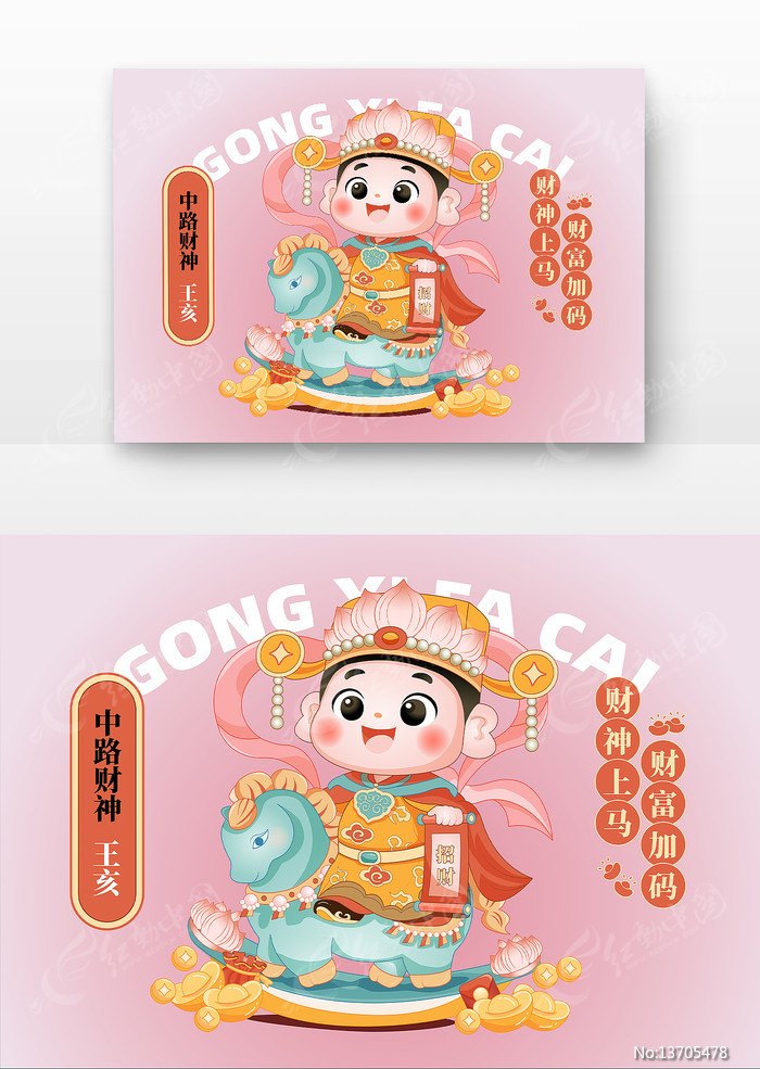 原创中路财神王亥卡通形象春节海报图片下载_红动中国