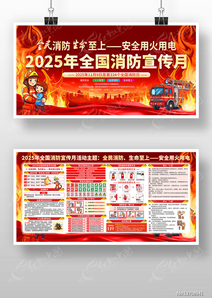 党建风2025年全国消防宣传月消防展板图片下载_红动中国