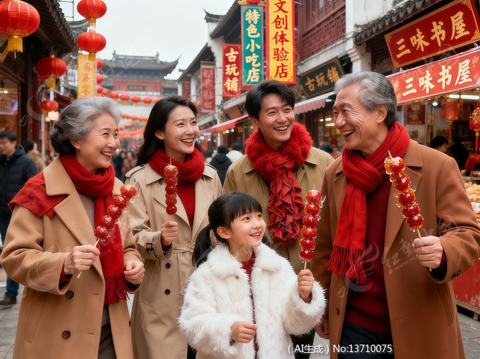 一家人逛春节集市