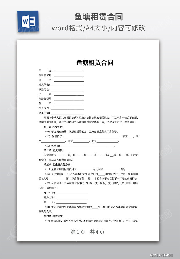 鱼塘租赁合同下载_红动中国