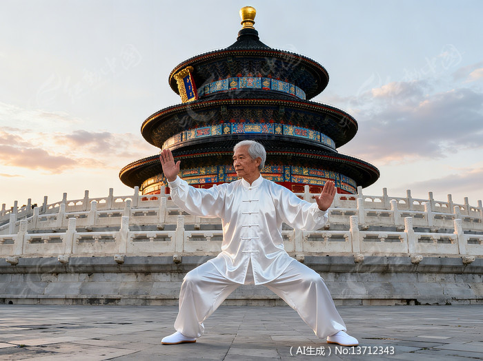 在天坛广场练太极拳的老爷爷