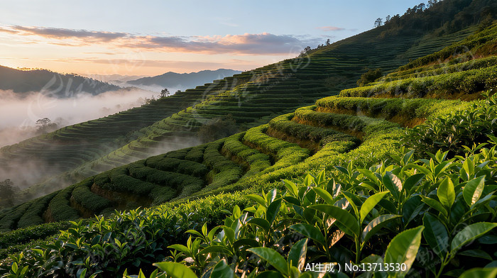 霞光中的山茶园
