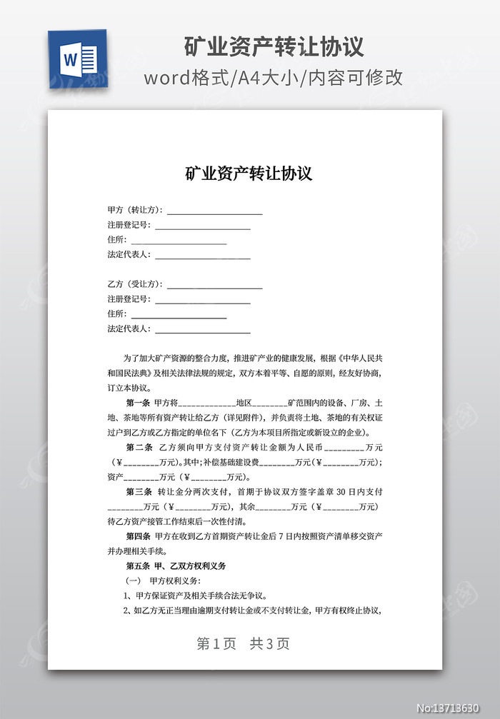 矿业资产转让协议下载_红动中国