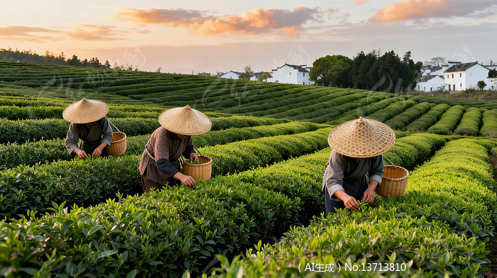 茶园里采摘茶叶的茶农