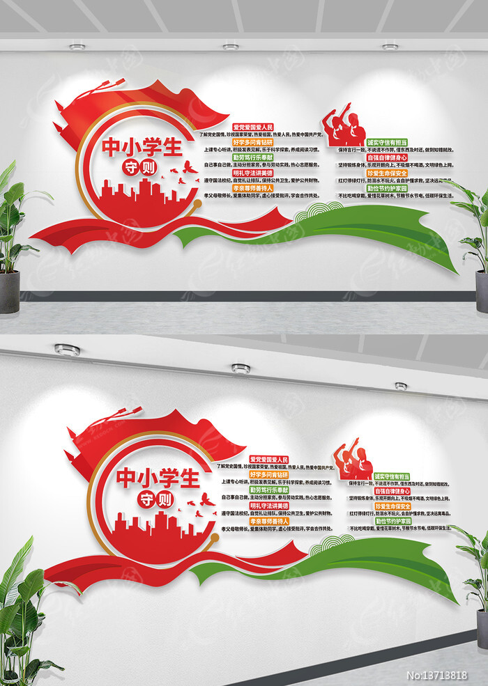中小学生守则校园文化墙模板图片下载_红动中国