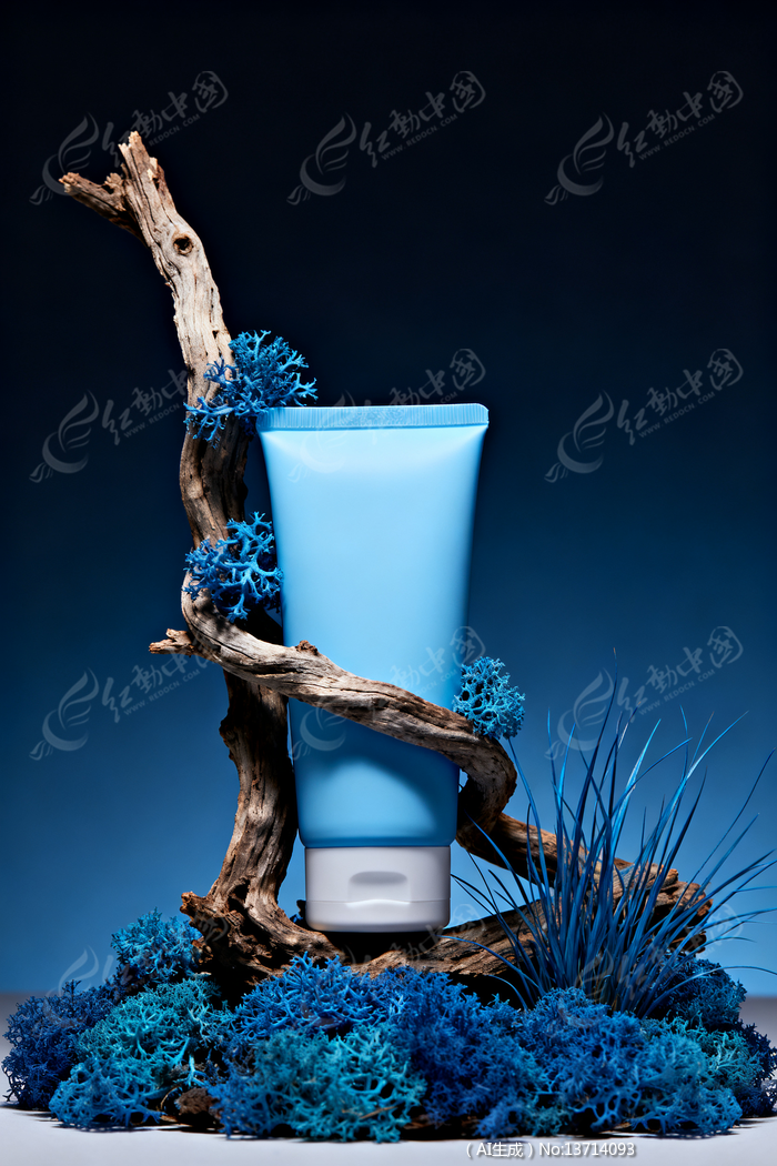 蓝色洗面奶化妆品护肤品实物展示照片背景
