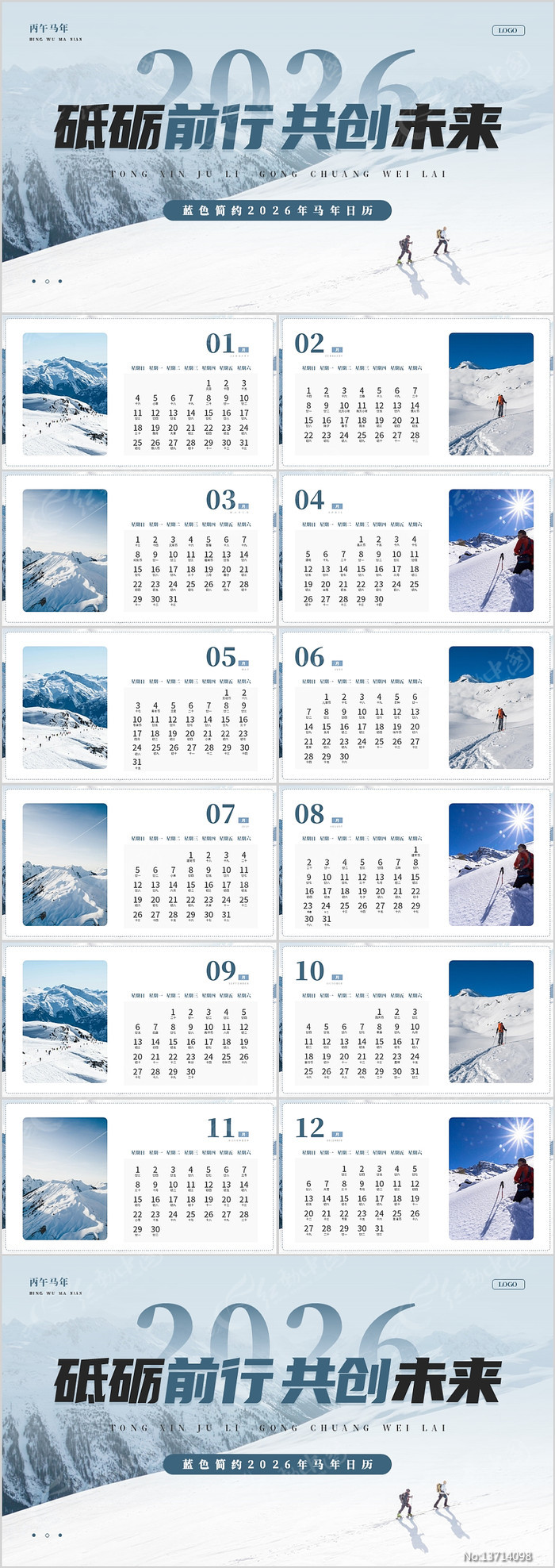 蓝色简约2026马年日历PPT模板下载_红动中国