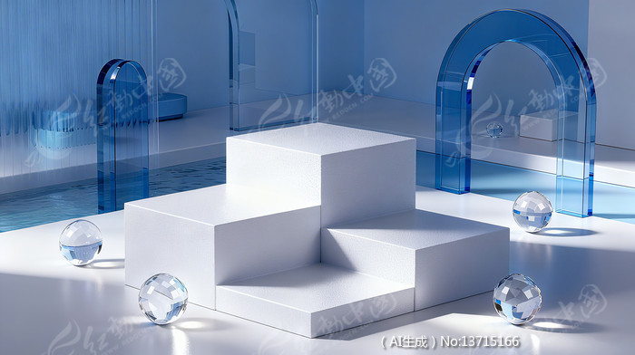 电商C4D简约蓝透明产品展台3D空间背景
