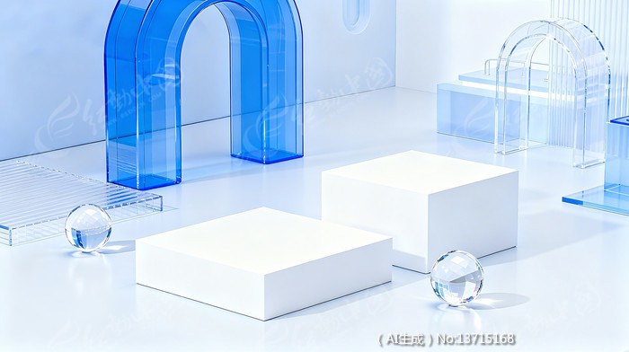电商C4D简约蓝透明产品展台3D空间背景