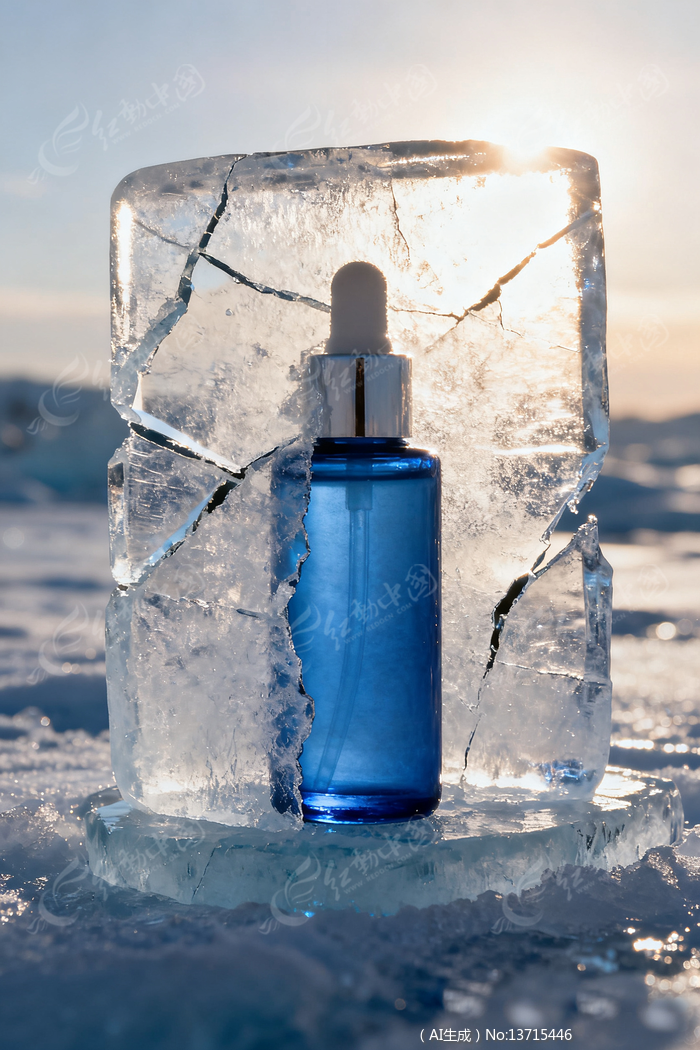 户外冰雪场景护肤品化妆品瓶子电商照片素材