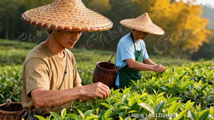 正在采茶的茶农