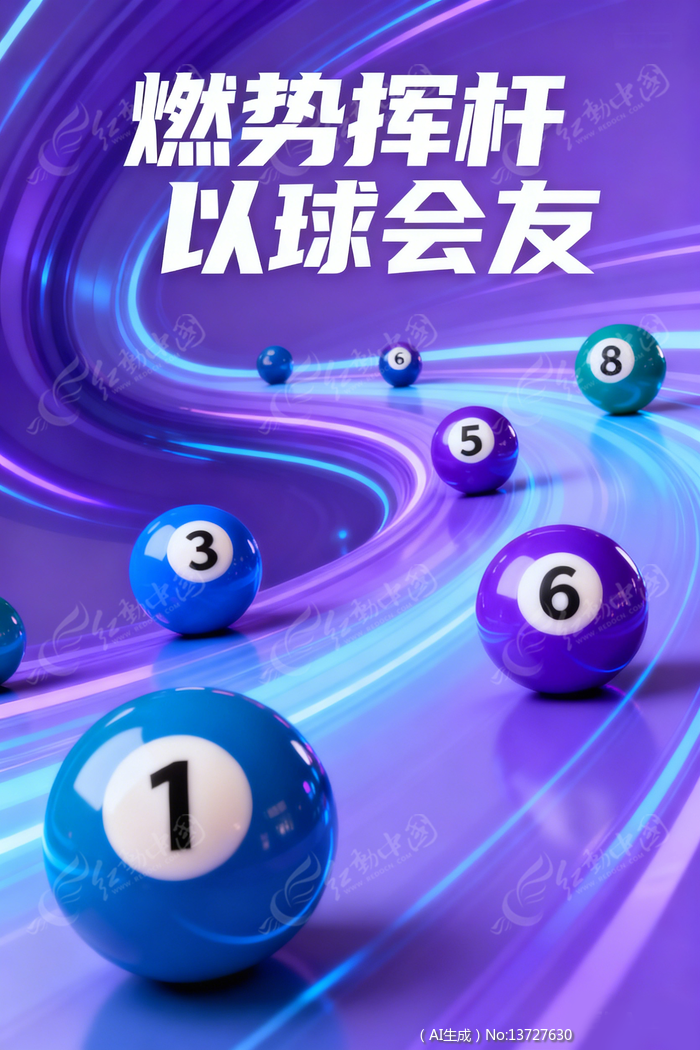 台球桌球比赛竞技场景炫彩背景紫色素材海报