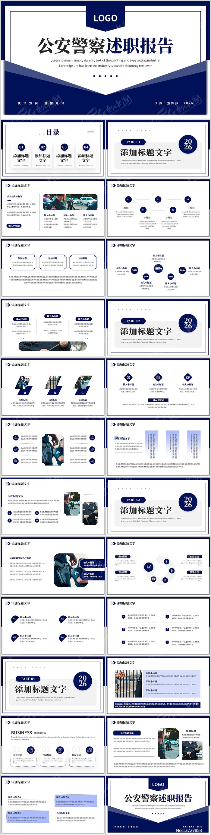蓝色简约公安警察述职报告工作总结PPT下载_红动中国