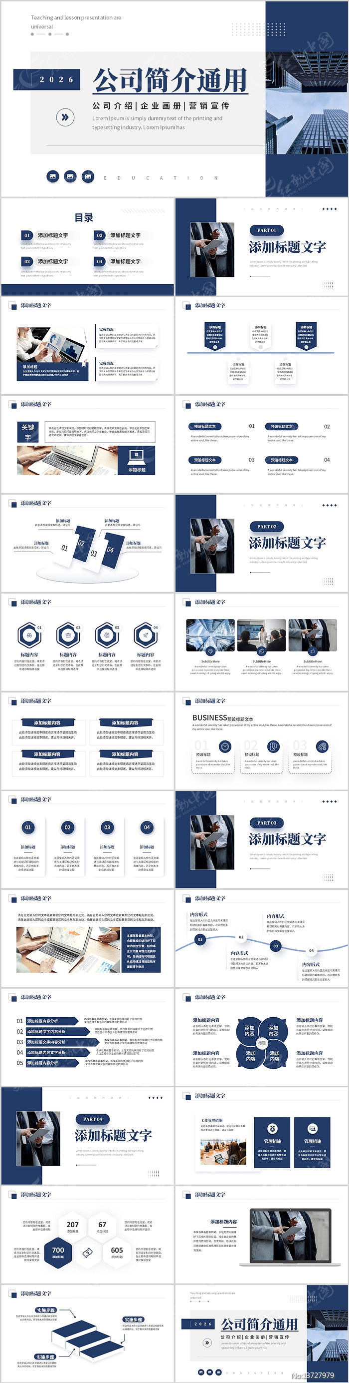 蓝色简约公司简介企业宣传通用PPT模板下载_红动中国
